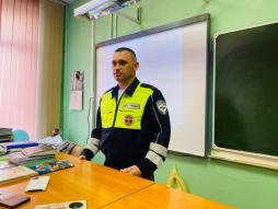 Участник СВО и инспектор ДПС ГИБДД Абрамов Александр Александрович провёл урок Мужества в 7Д классе, где рассказал о значимости своей профессии, продемонстрировав фото и видео материалы из личного архива.